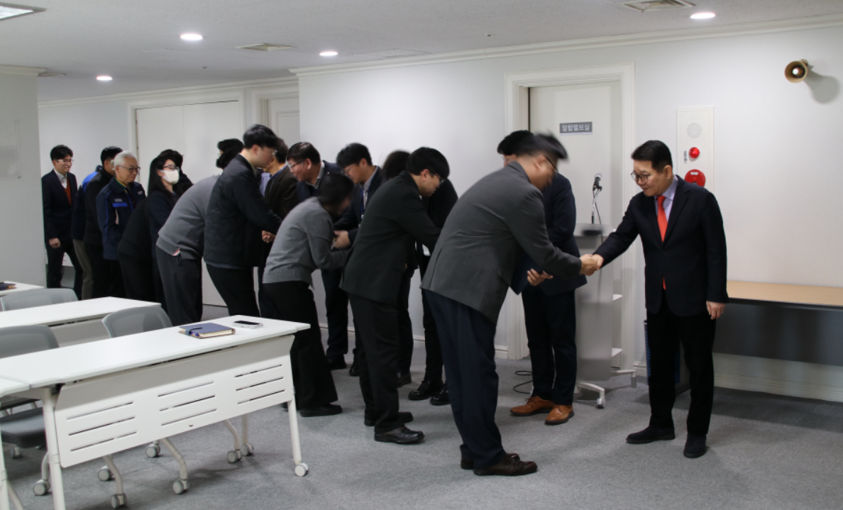 임직원들이 모여 회사의 방향성과 목표를 공유했습니다.